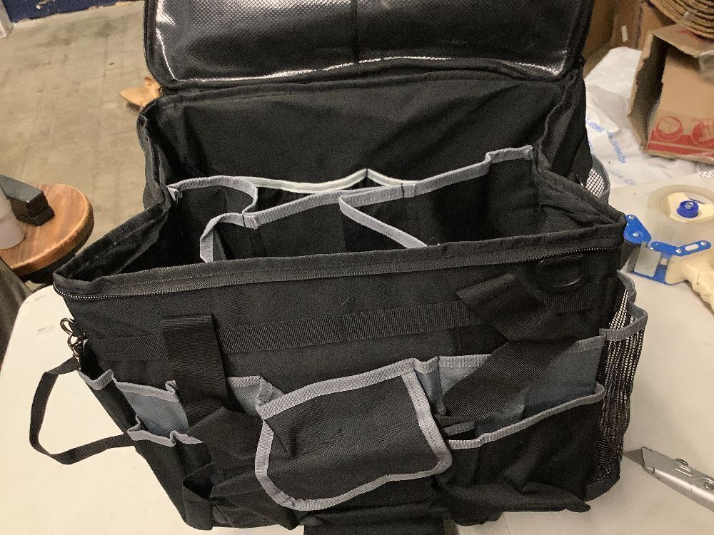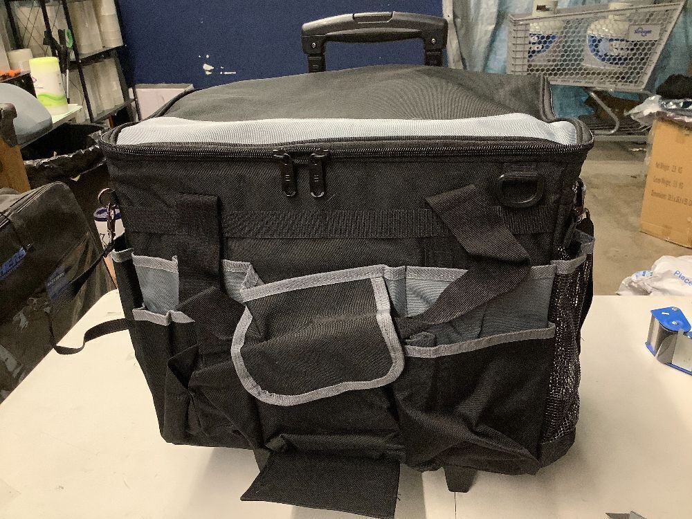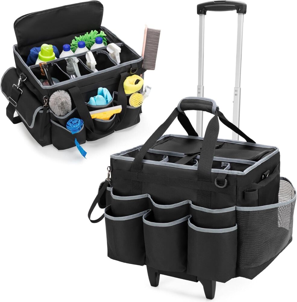 HODRANT Large Cleaning Caddy with Detachable Trolley & Shoulder Strap, Cleaning Supplies Bag with Handles & Support Plates, Cleaning Product Rolling Organizer for Car Wash and Housekeeping