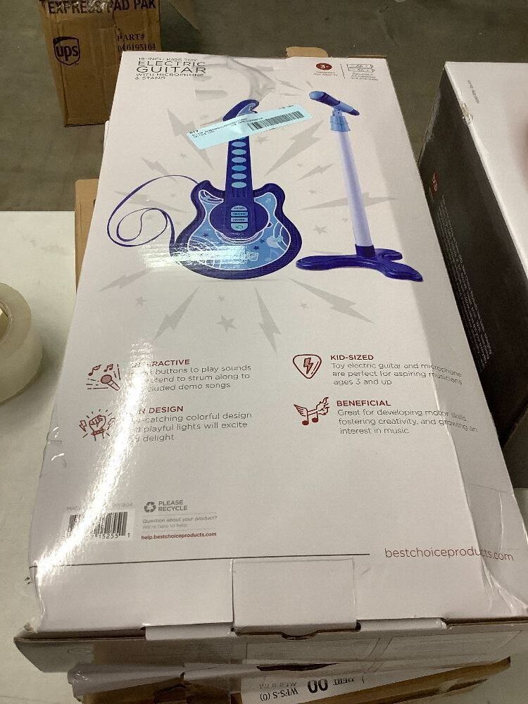 Kids Pretend Play Guitar Musical Instrument Toy w/ Microphone, Stand - 19in