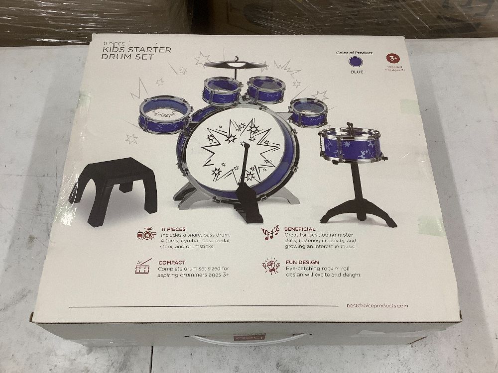 Kids Starter Drum Set w/ Bass Drum, Tom Drums, Snare, Cymbal, Stool, Drumsticks