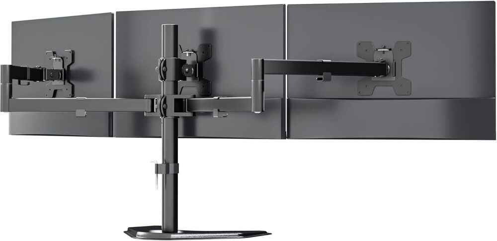 Triple Monitor Stand, Free Standing Three LCD Monitor Fully Adjustable Desk Mount Fits 3 Screens up to 27 inch, 22 lbs Weight Capacity per Arm