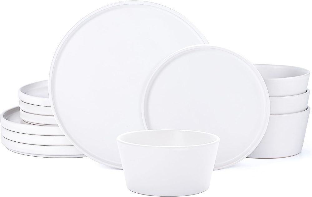 12-Piece Stoneware Plates and Bowls Set for 4