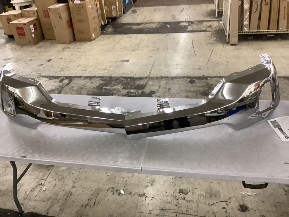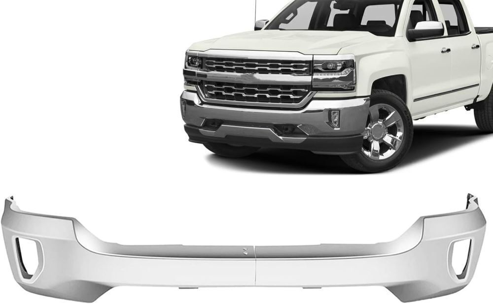 2 Piece Steel Front Bumper for Chevy Silverado 1500 2016-2019, with Fog Light Holes, without Parking Sensor Hole, Chrome Finish