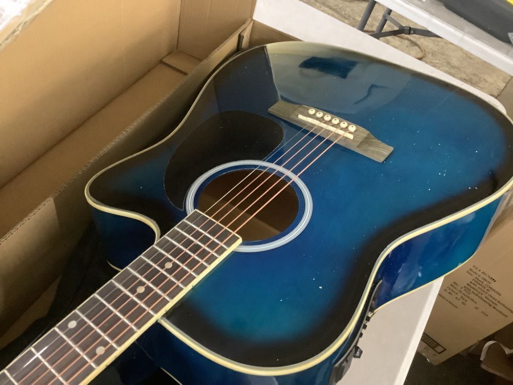 41in Beginner Acoustic Electric Cutaway Guitar Set w/ Case, Strap - Strings Need Replaced