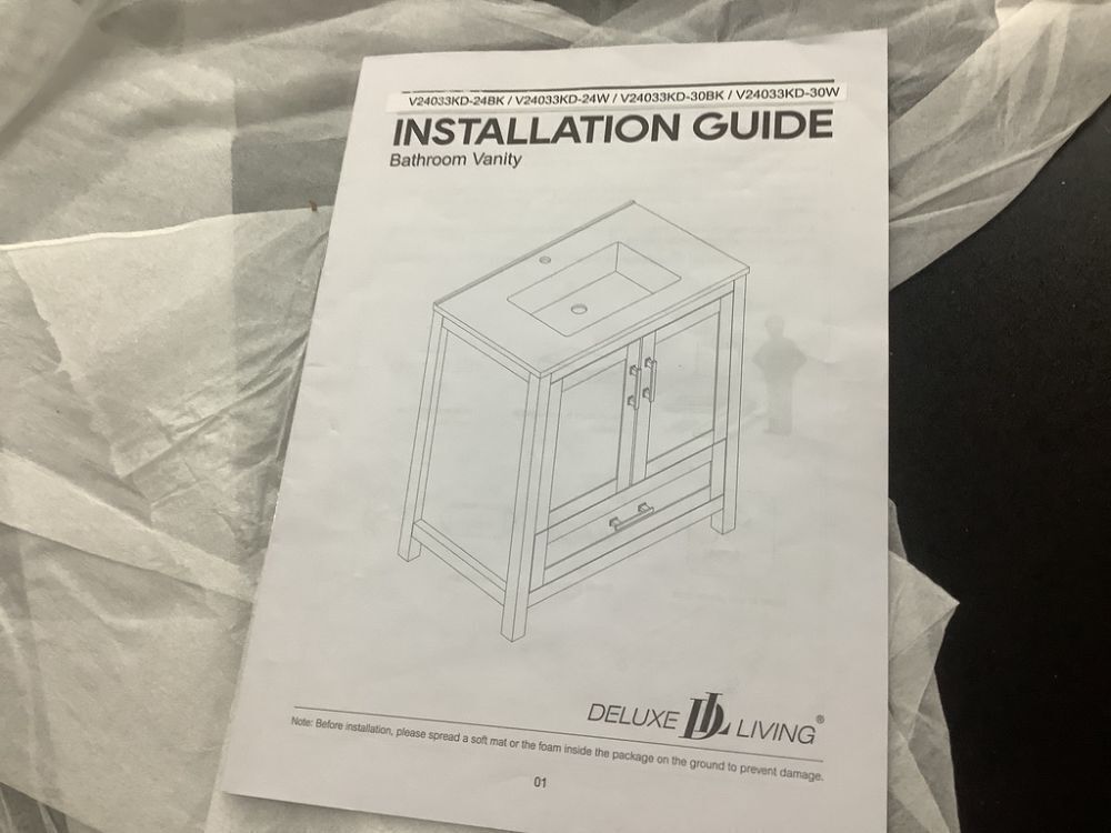 DELUXE LIVING Raven 25 in.W Single Sink Black Freestanding Bath Vanity with White Engineered Solid Surface Top