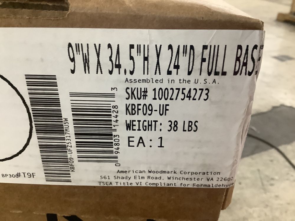 Lot of (2) Hampton Bay Recessed Panel 9 in. W x 24 in. D x 34.5 in. H Assembled Base Cabinet in Unfinished