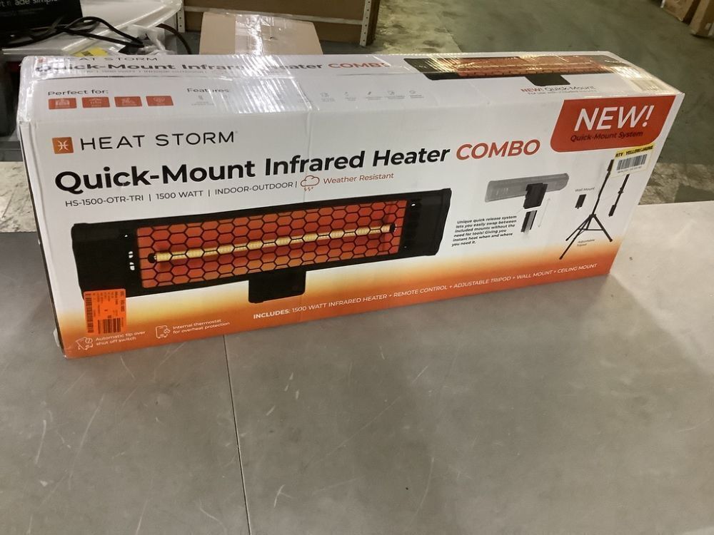 HEAT STORM Tradesman 1500-Watt Electric Indoor/Outdoor Quartz Infrared Portable Space Heater w/Tripod Wall and Ceiling Mount, Black