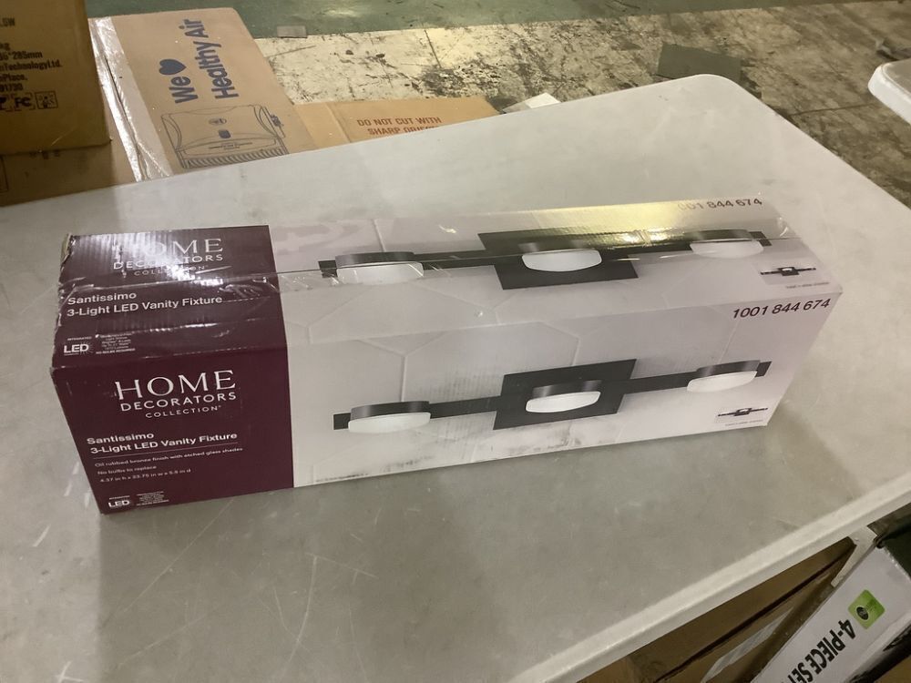 Home Decorators Collection Montrose 23.75 in. 3-Light Contemporary Bronze Dimmable Bathroom Vanity Light with Etched Glass Shade