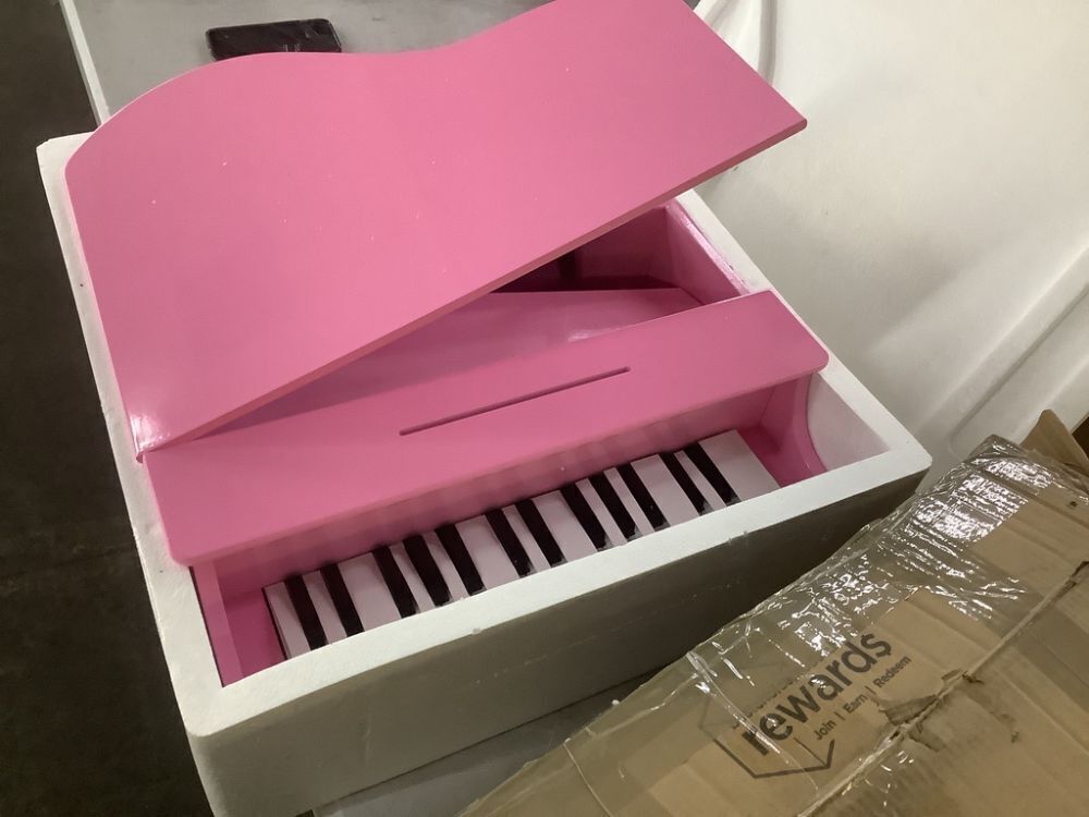 Kids Mini Wooden Grand Piano w/ Lid, Bench, Music Rack, Song Book, Stickers