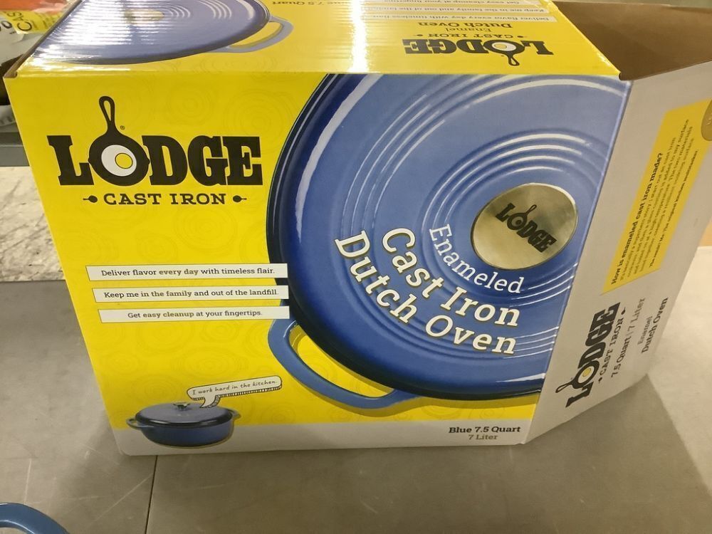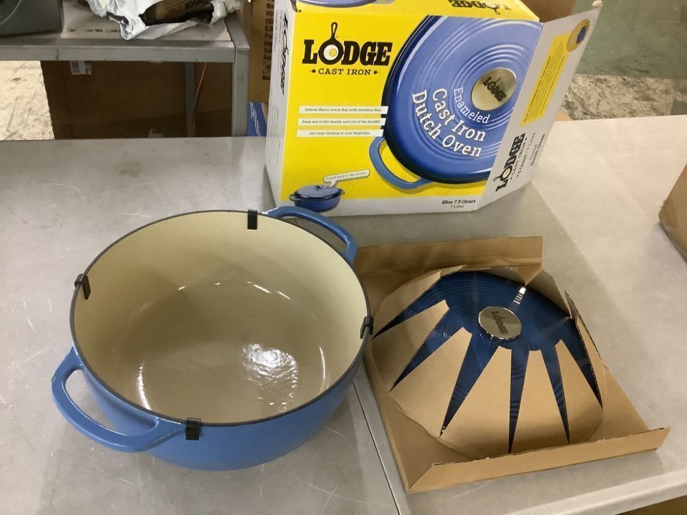 Lodge 7.5 qt. Blue Enameled Cast Iron Dutch Oven - Small Chip on Handle