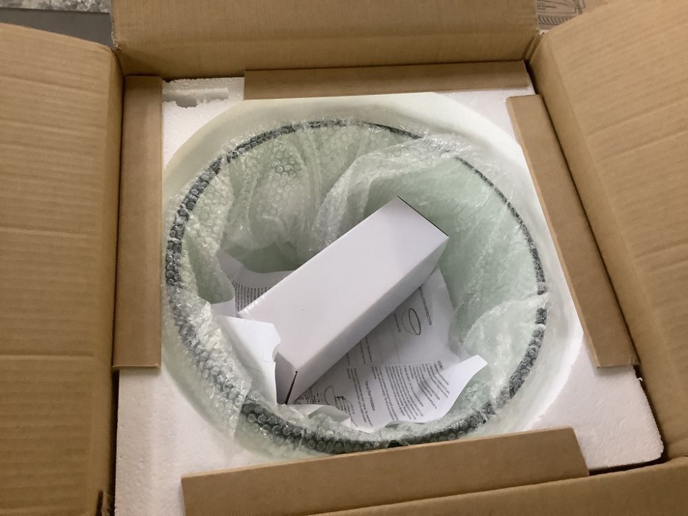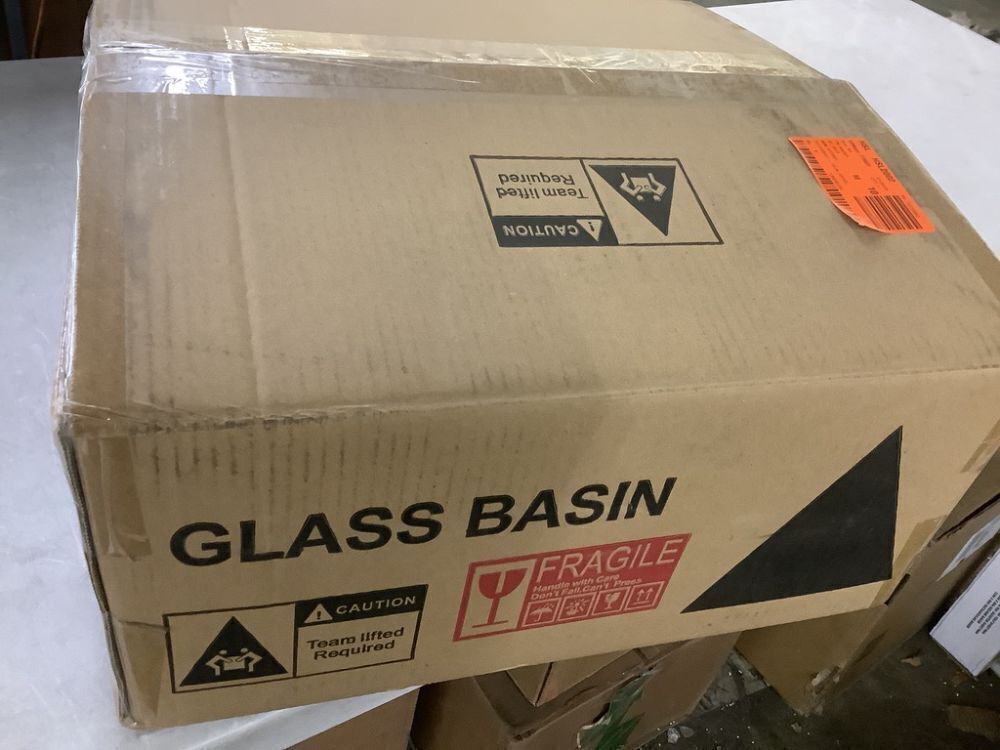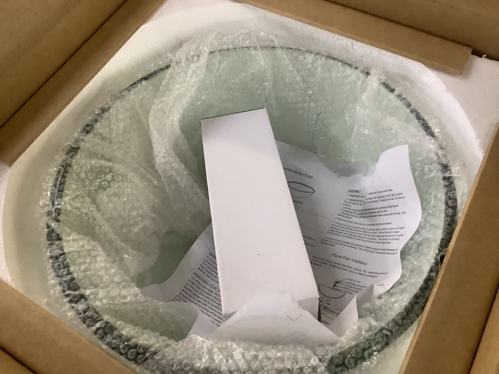 LORDEAR 14 in. Above Counter Round Bathroom Vessel Sink Bowl in Clear Glass with Faucet Drain