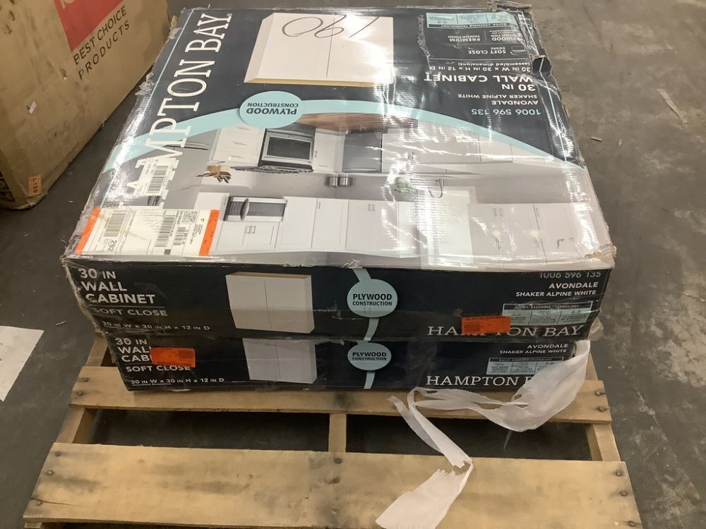 Lot of (2) Hampton Bay Avondale 30 in. W x 12 in. D x 30 in. H Ready to Assemble Plywood Shaker Wall Kitchen Cabinet in Alpine White - Uninspected