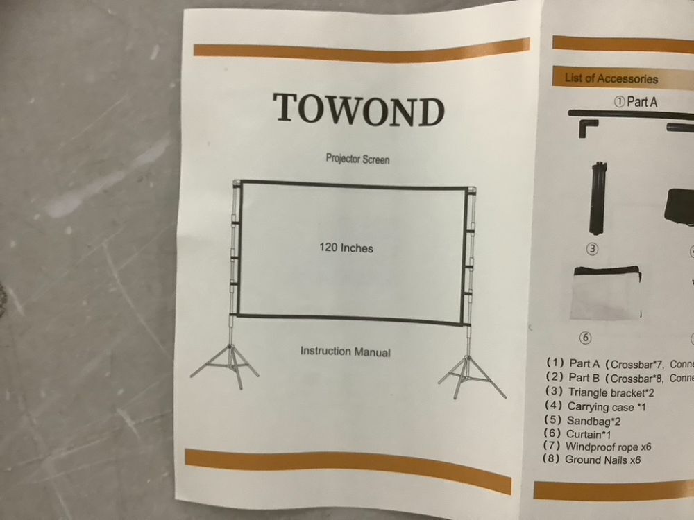 TOWOND Outdoor Projector Screen with Stand, 120 inch