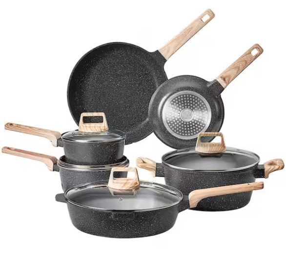 VEVOR 17 Piece Nonstick Granite Cookware Set, Black Aluminum