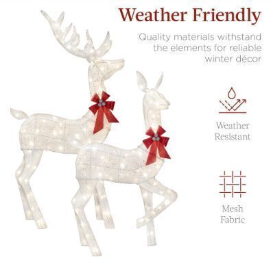 3-Piece Lighted Christmas Deer Set Outdoor Decor with LED Lights, White, BCP