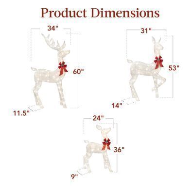 3-Piece Lighted Christmas Deer Set Outdoor Decor with LED Lights