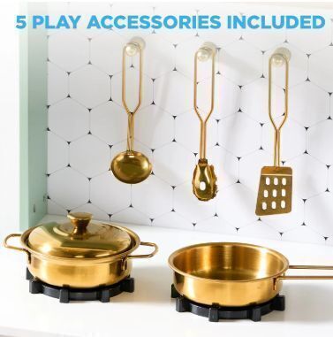 Pretend Play Cottage Kitchen Wooden Toy Set for Kids w/ 5 Accessories, Sage, BCP