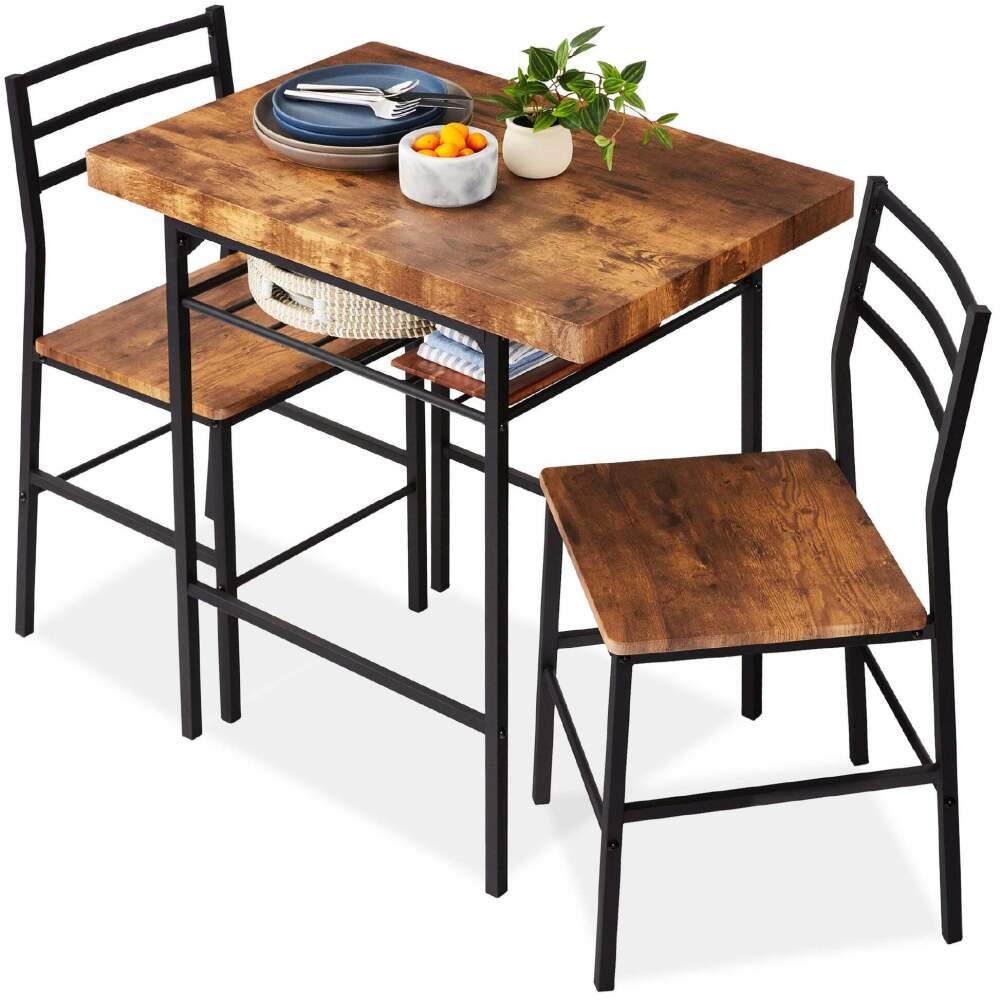 3-Piece Modern Square Dining Set w/ Storage Rack