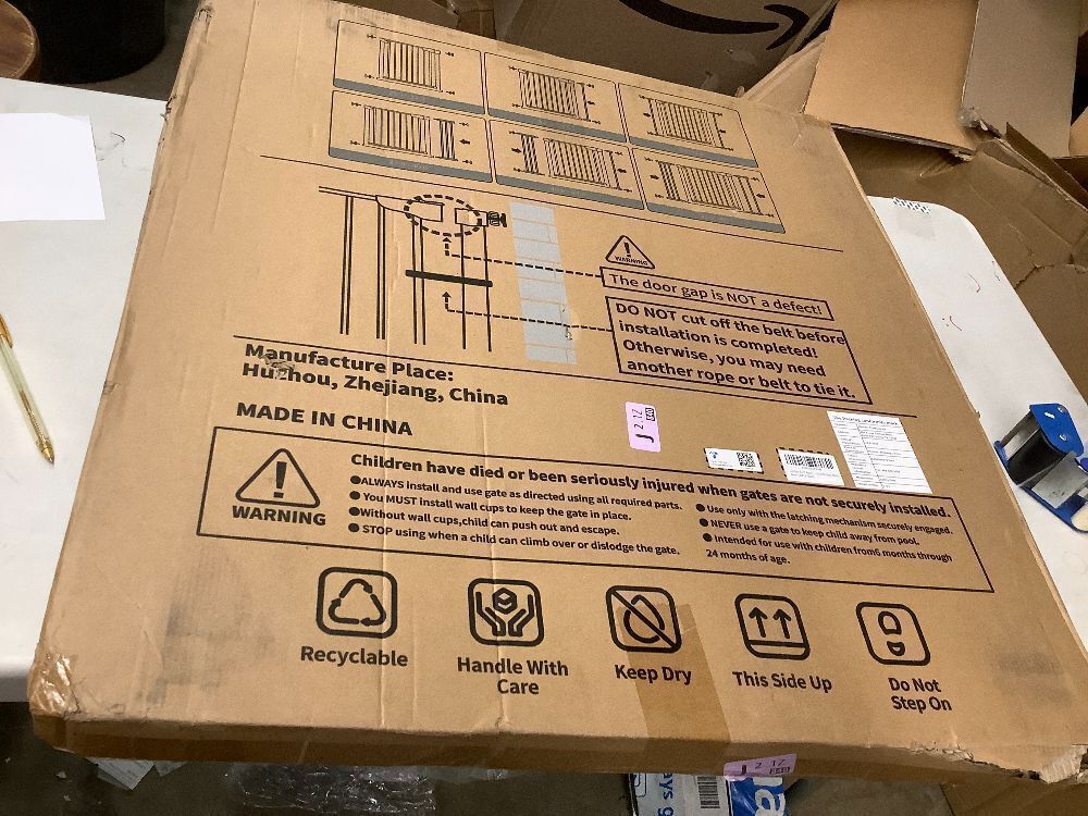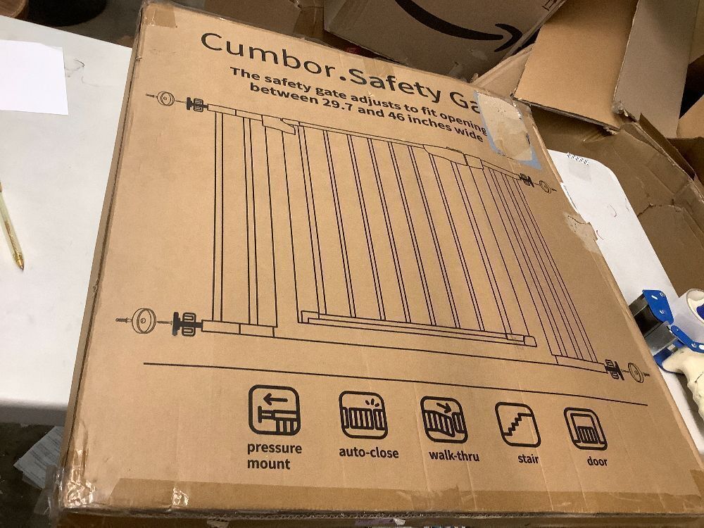43.3”Auto Close Safety Baby Gate, Extra Tall and Wide Child Gate, Easy Walk Thru Durability Dog Gate for The House, Stairs, Doorways. Includes 4 Wall Cups, 2.75-Inch and 8.25-Inch Extension