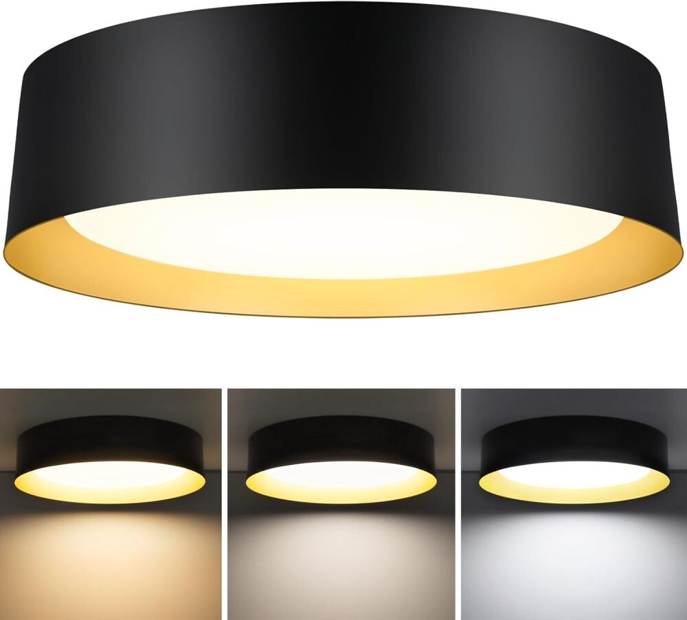 BrightHome 16in Flush Mount LED Ceiling Light, 30W(300W Equiv) 3000LM, 3 Colors 3000K 4000K 5000K, Dimmable Black and Gold Modern Flush Mount Light for Bedroom, Bathroom, Hallway, Kitchen