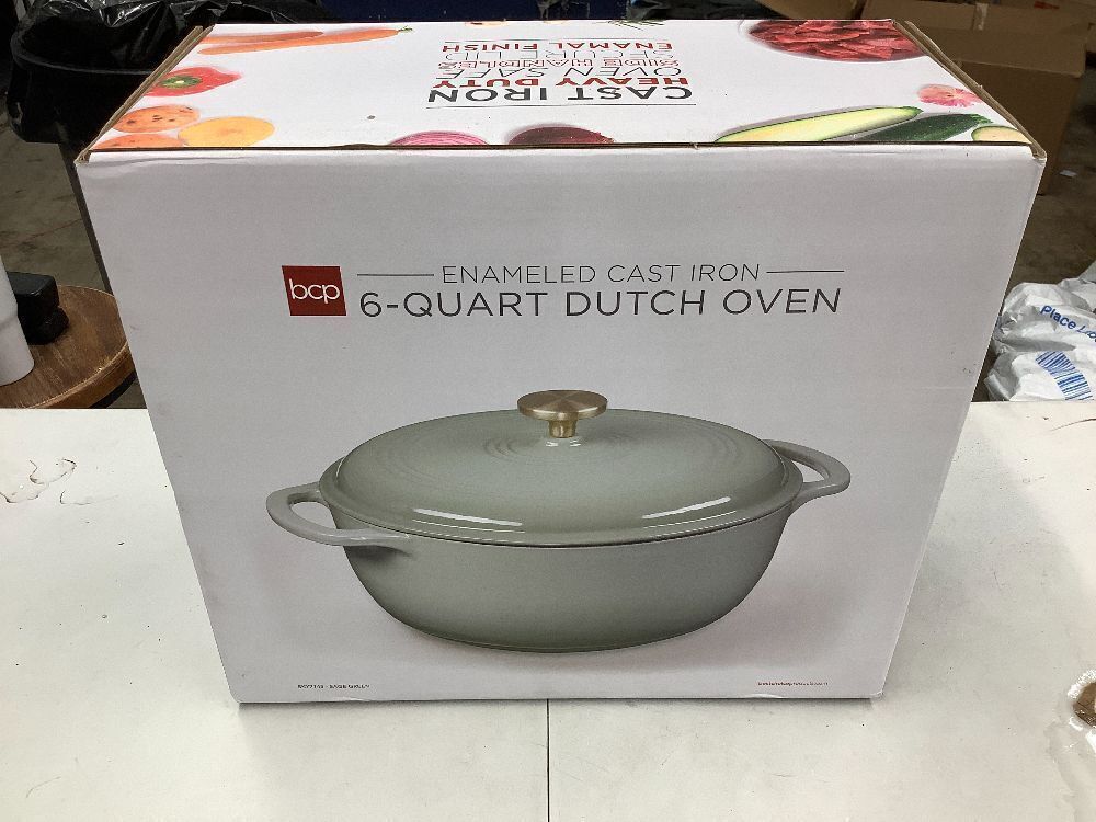 Cast-Iron Dutch Oven Kitchen Cookware w/ Enamel, Handles - 6qt