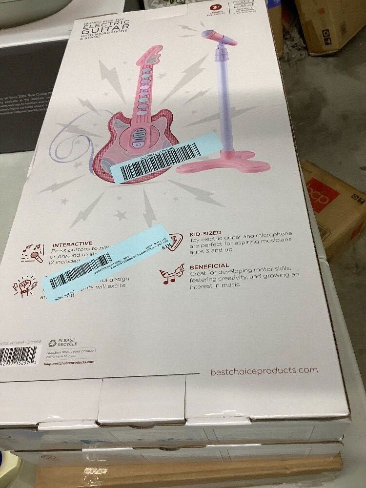 Kids Pretend Play Guitar Musical Instrument Toy w/ Microphone, Stand - 19in