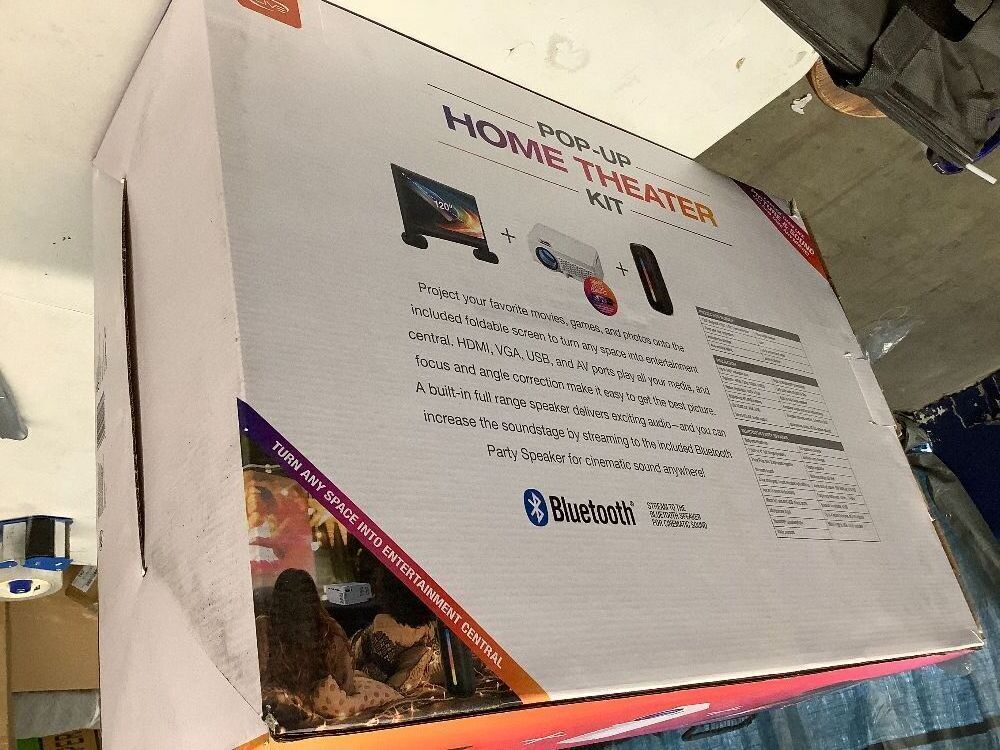 Pop-Up Movie Theater Kit, Projector, Inflatable Projection Screen, and Bluetooth Speaker