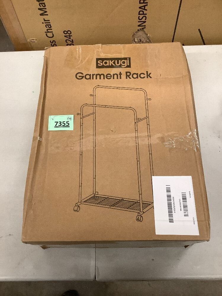 Sakugi Clothes Rack - Double Rods Clothing Rack with Mesh Shelf, Hooks & Wheels, Metal Clothing Racks for Hanging Clothes & Bags, Multifunctional Garment Rack for Laundry, Black
