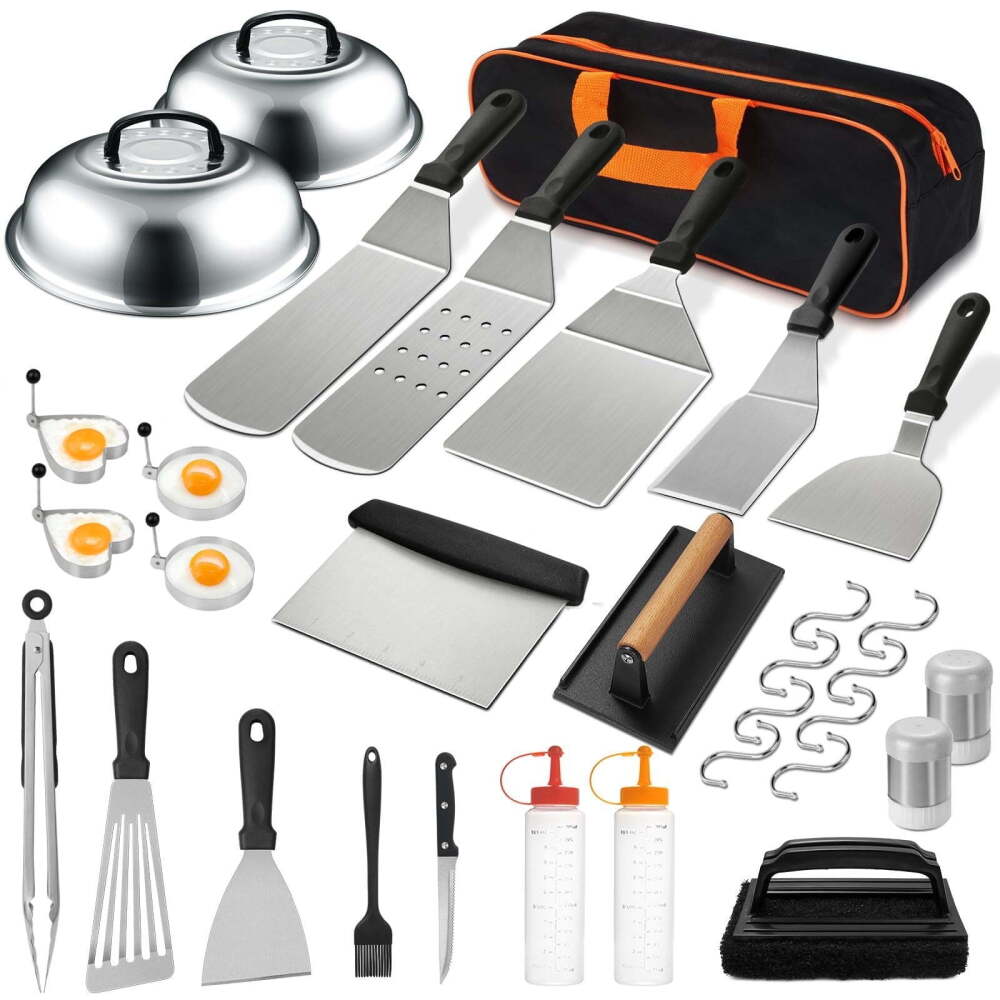 Stainless Steel Griddle Accessories Kit with Spatula, Scraper, Basting Cover & Grill Tools