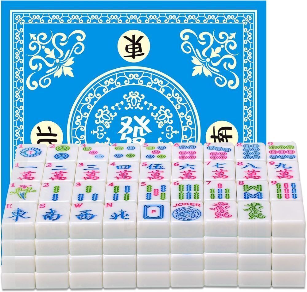 1.2-inch Lantian Jade White American Mahjong Tile Set with Mahjong Table Mat