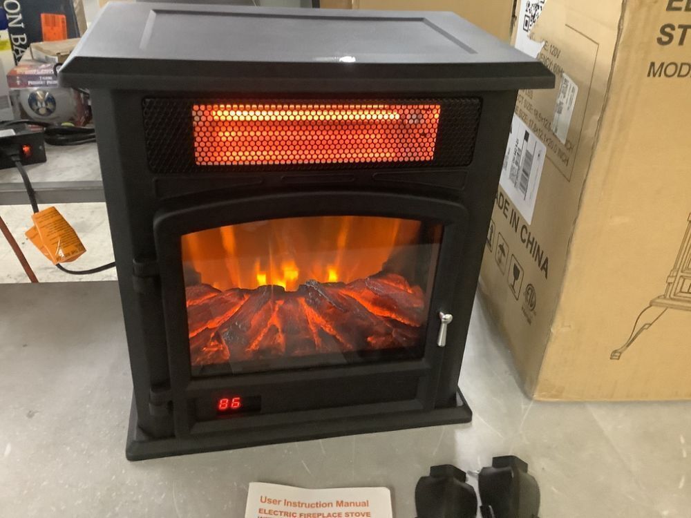 1500W Electric Radiant Fireplace Stove Heater, Realistic 3D Flame - Missing Remote