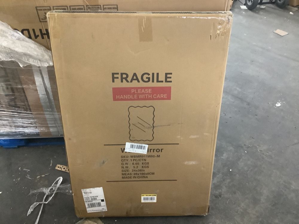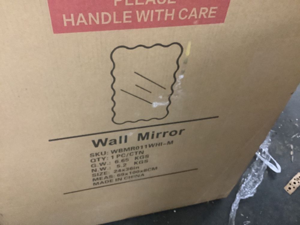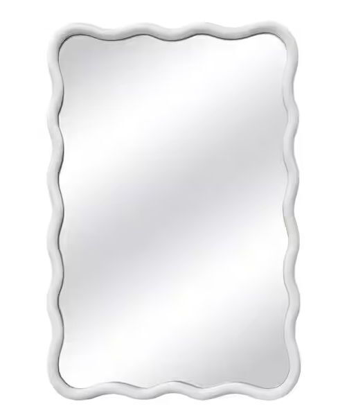 24 in. W x 36 in. H Rectangle White Wood Framed Wavy Wall Mirror