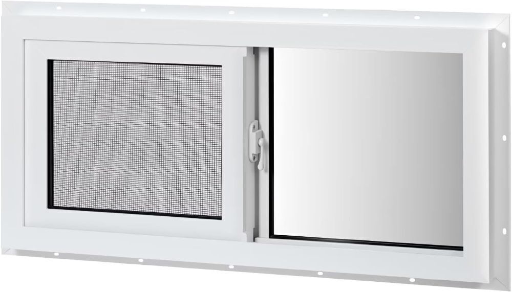 COLORPAPA Vinyl Basement Window, 32" x 14" Slider Window with Double Pane Insulated Tempered Glass and Fiberglass Mesh Screen