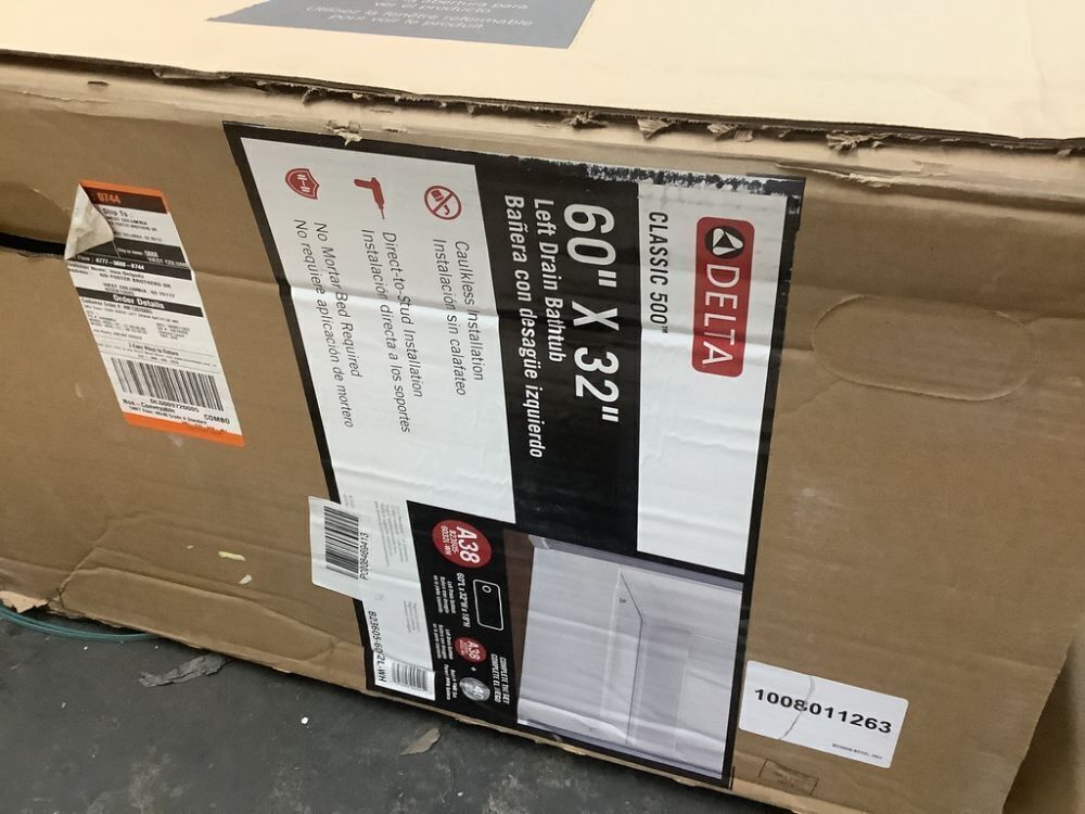 Delta Classic 500 60 in. x 32 in. Alcove Deep Soaking Bathtub with Left Drain in High Gloss White