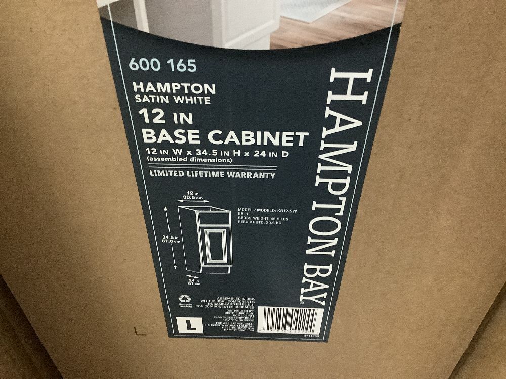 Hampton Bay Hampton 12 in. W x 24 in. D x 34.5 in. H Assembled Base Cabinet in Satin White