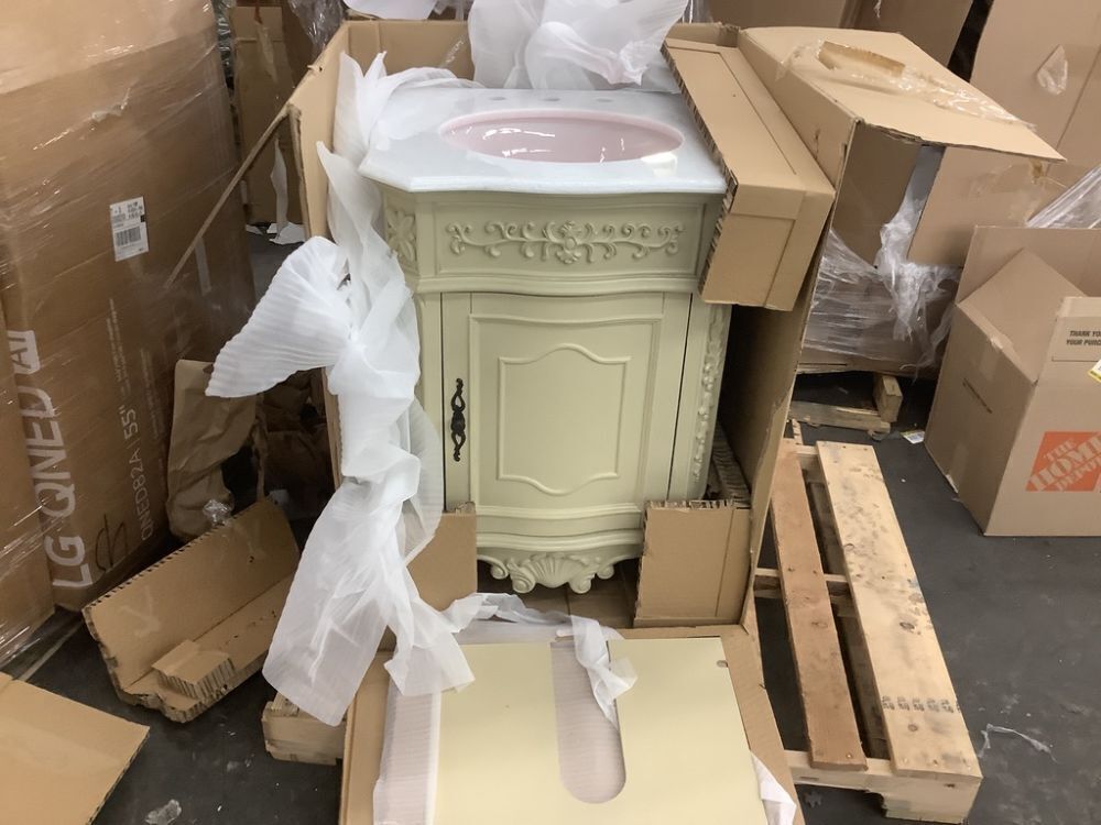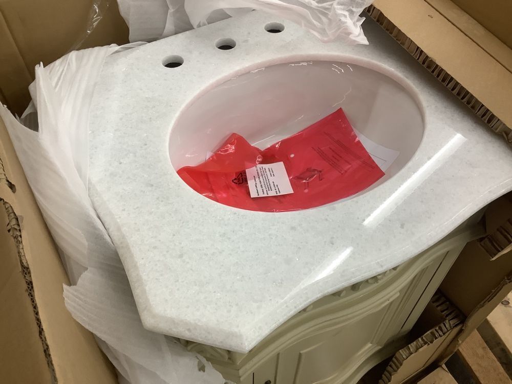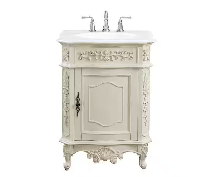 Home Decorators Collection Winslow 26 in. Single Sink Freestanding Antique White Bath Vanity with White Marble Top