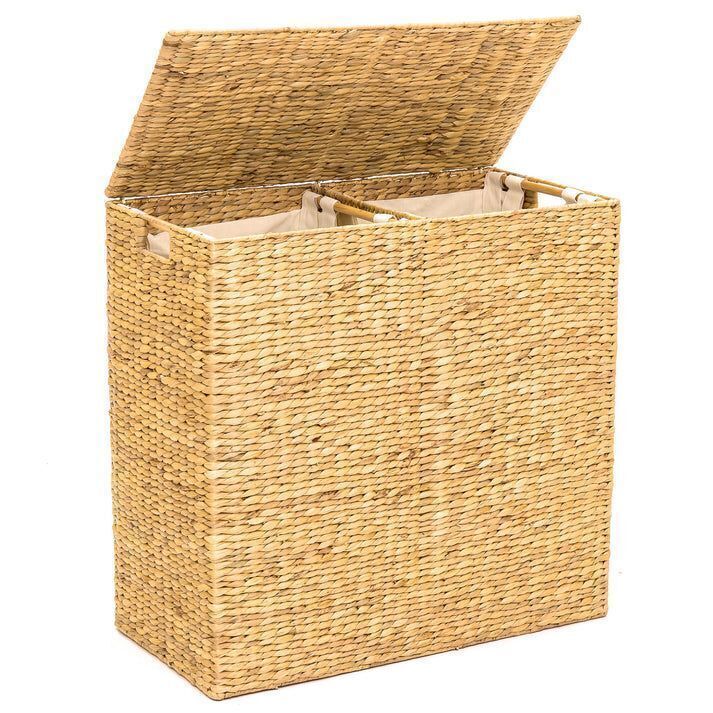 Large Water Hyacinth Double Laundry Hamper Basket w/ 2 Liner Bags