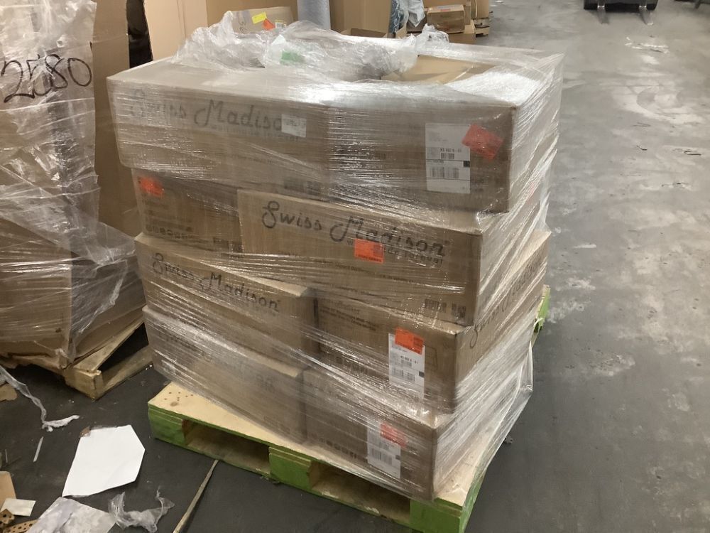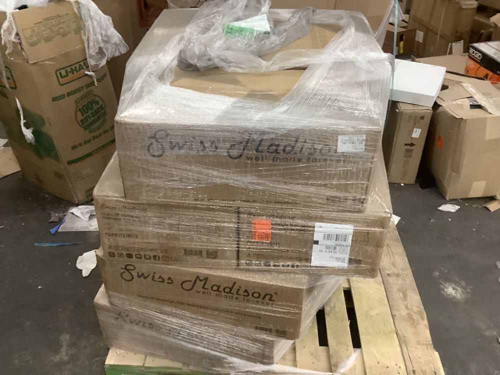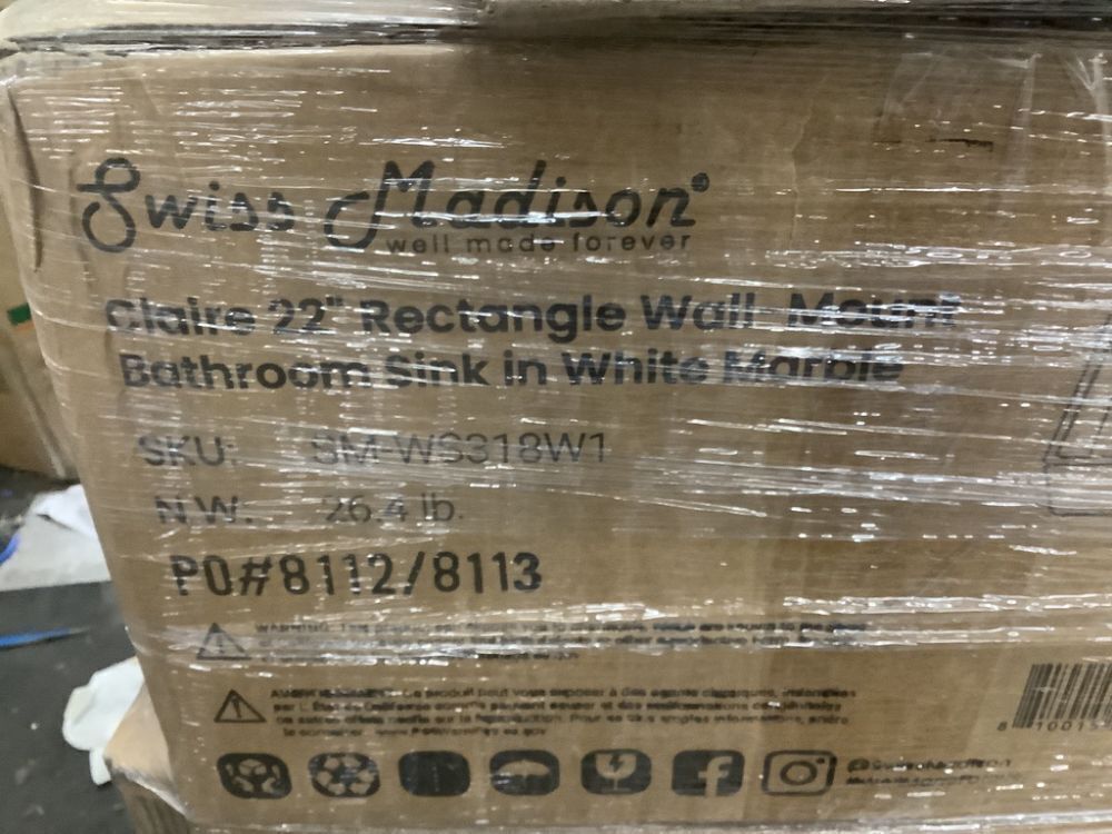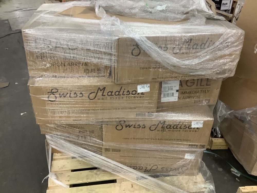 Pallet of (12) Swiss Madison Claire Ceramic Wall Hung Sink in White, 22.5" x 13" x 5.5"