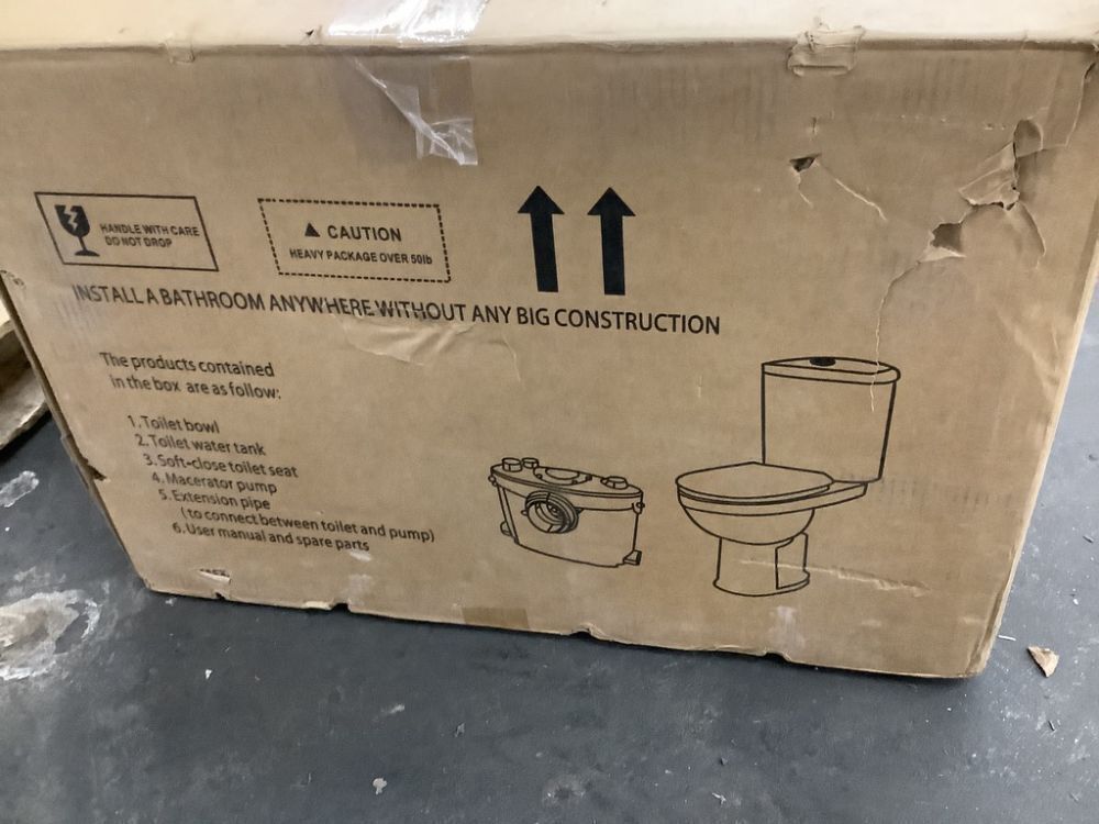 Rear Outlet Macerating 2-Piece 1.0/1.6 GPF Dual Flush Round Toilet, with 0.8 HP Macerating Pump in White