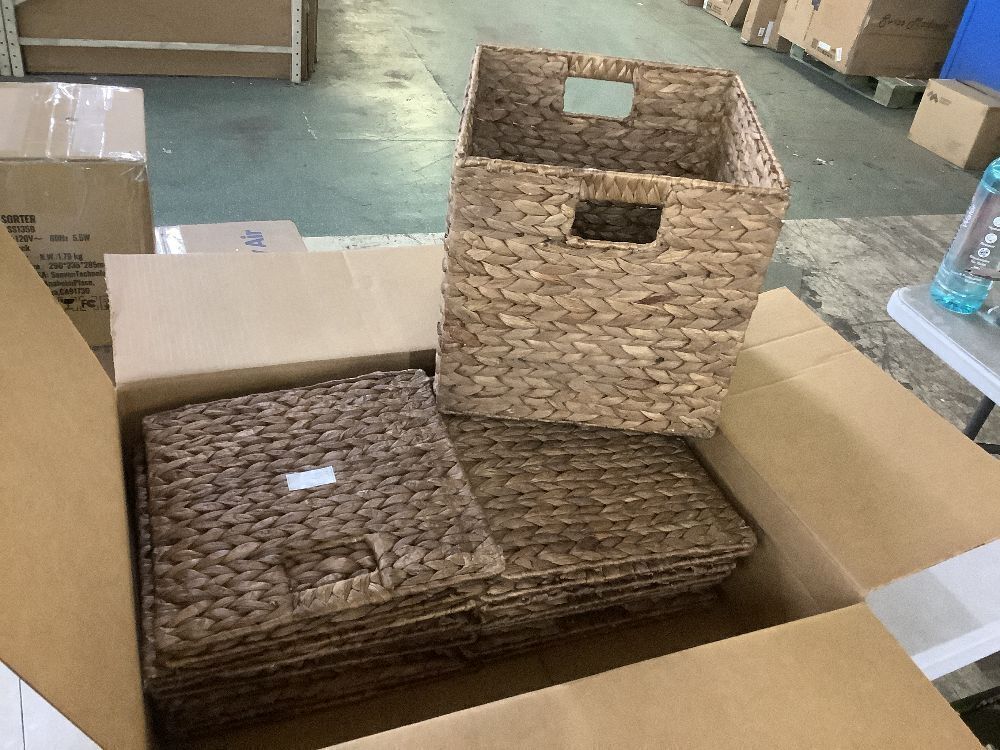 Set of 5 Collapsible Hyacinth Storage Baskets w/ Inserts - 12x12in