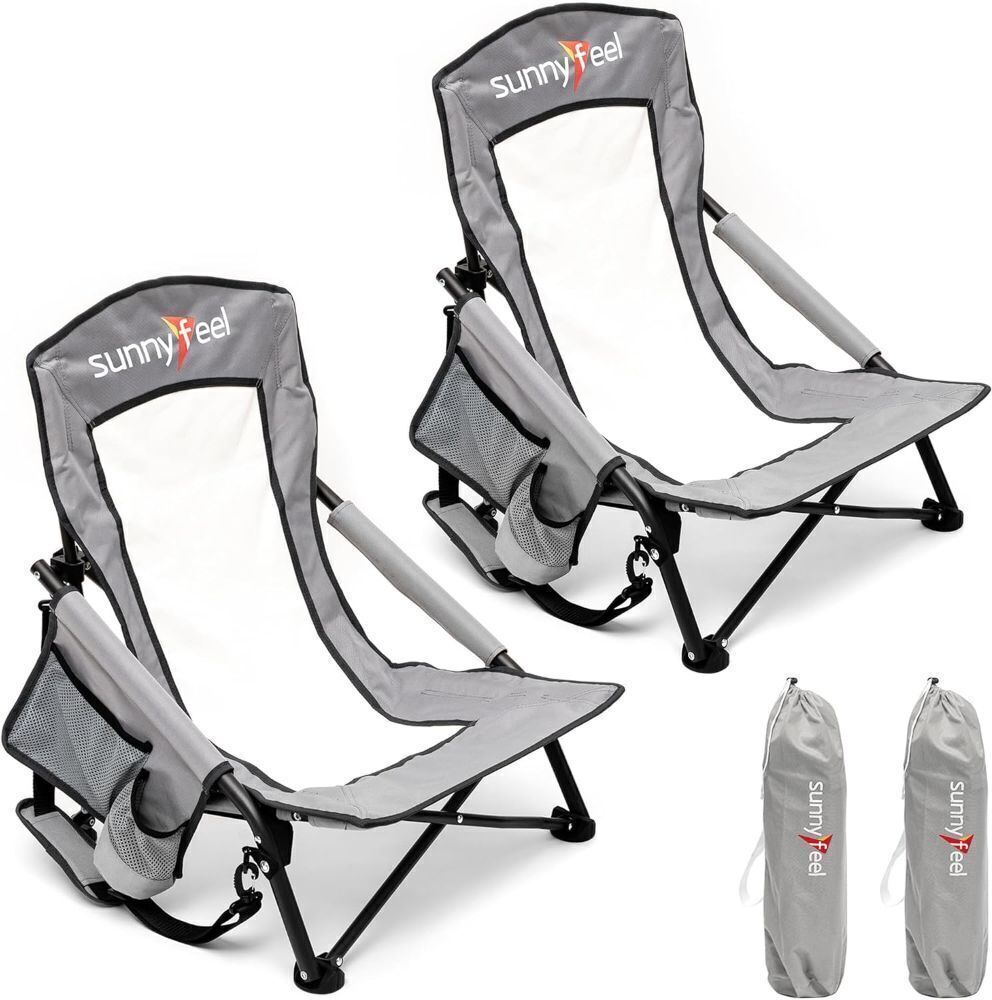 SUNNYFEEL Folding Low Beach Chair with Mesh Back, 2 Pack