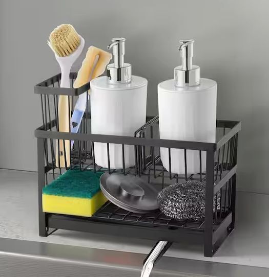 VEVOR 2-Tier Kitchen Sink Caddy Organizer, Sponge and Brush Holder w/ Divider, Rotating Drain Spout
