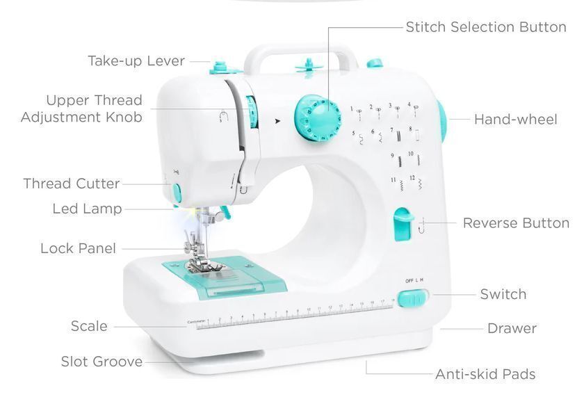 BCP 6V Portable Foot Pedal Sewing Machine w/ 12 Stitch Patterns. This Item Is Grey & White