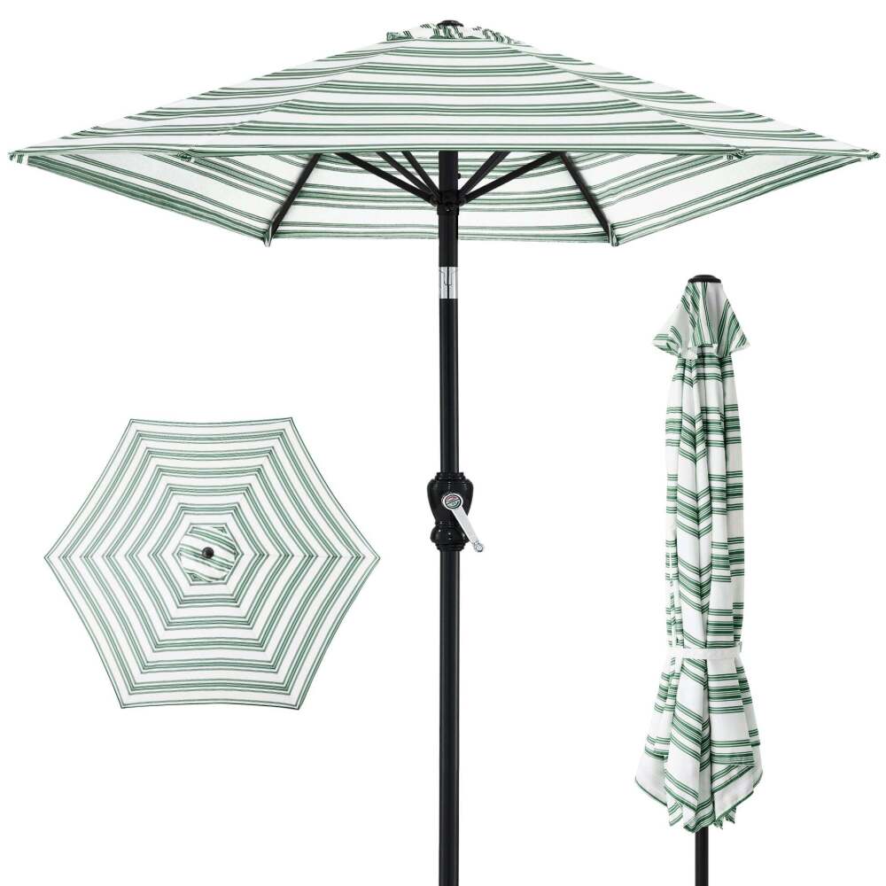 Outdoor Steel Striped Market Patio Umbrella w/ Tilt, Crank Lift - 10ft