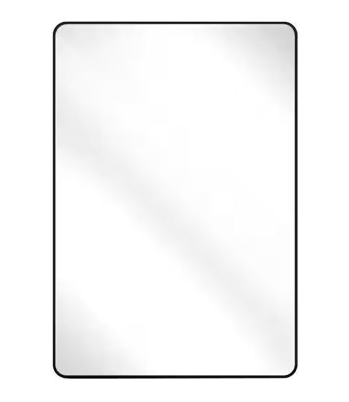 24 in. W x 36 in. H Rectangular Aluminum Alloy Framed Rounded Black Wall Mirror