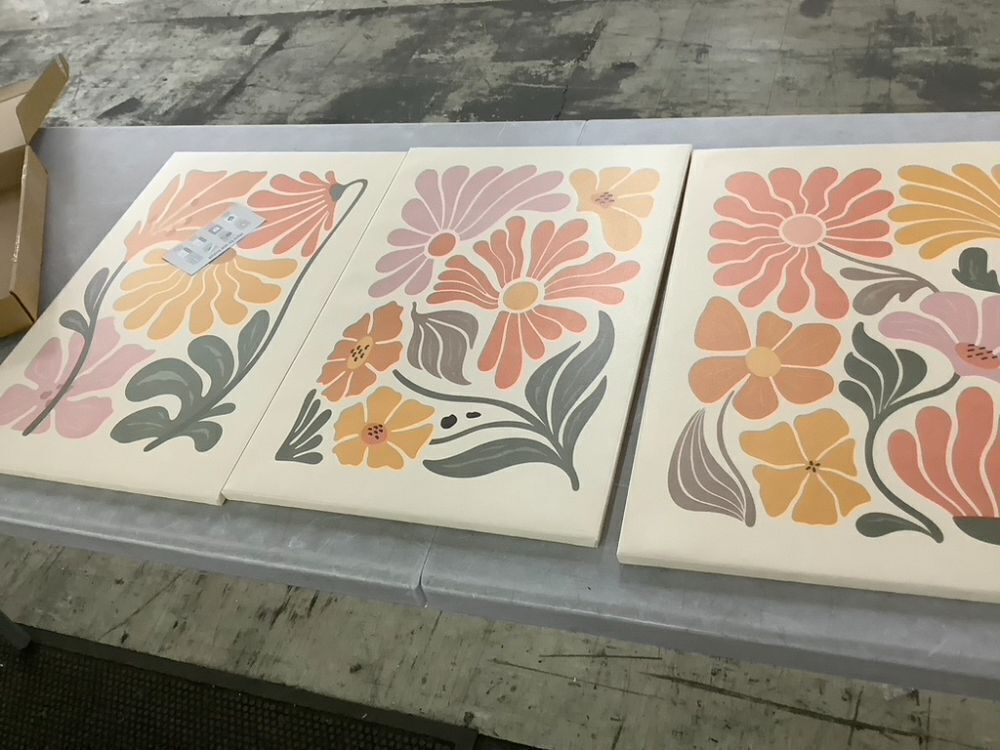 Boho Flower Canvas Wall Art, 3 pc, 16" x 24"