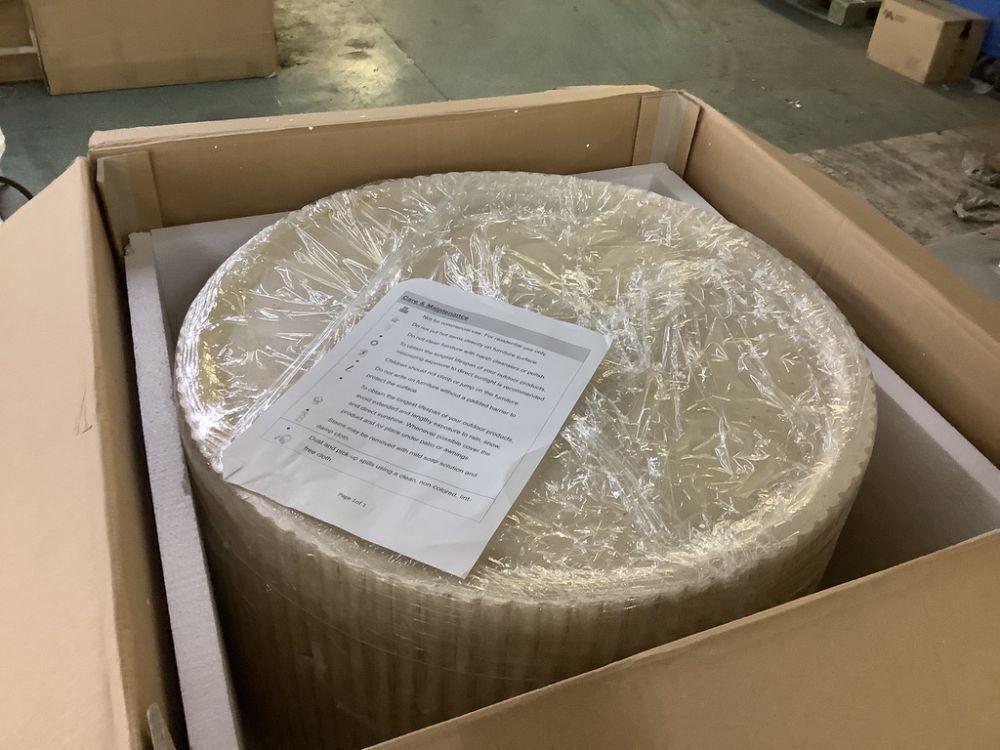 CHRISTOPHER KNIGHT HOME Sibley Brown Round Wood Fluted Outdoor Coffee Table, Natural - Small Blemish