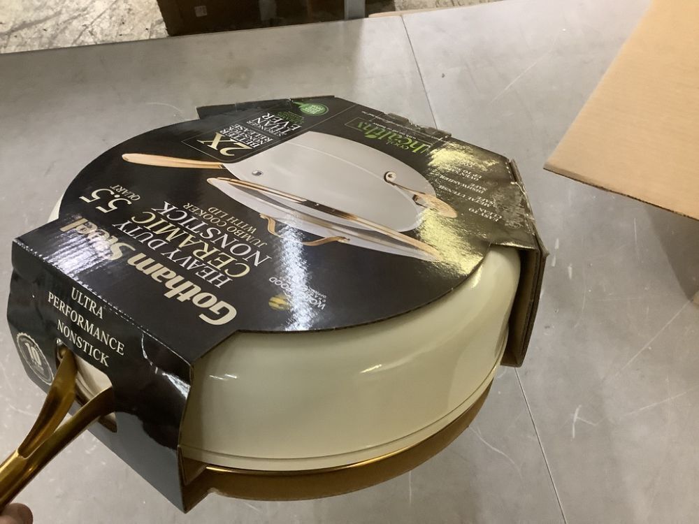 Gotham Steel Natural Collection 5.5 qt. Aluminum Ultra Performance Ceramic Nonstick Deep Saute Pan in Cream with Lid and Gold Handle