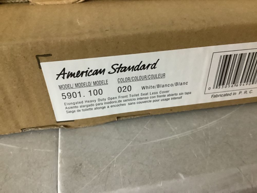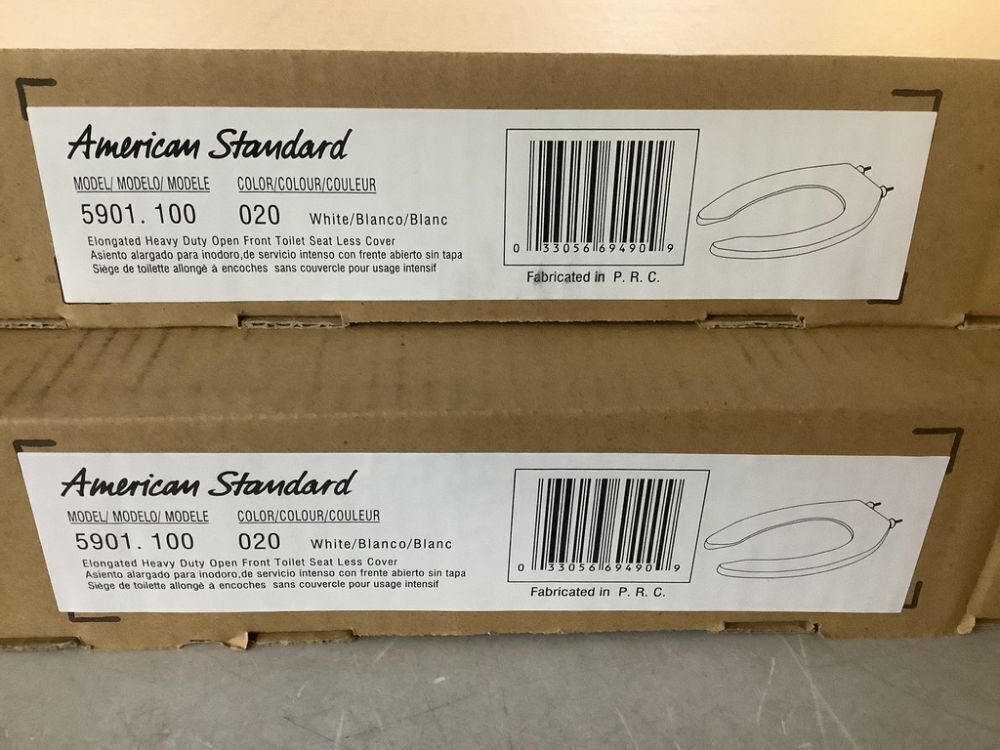 Lot of (4) American Standard Commercial Elongated Open Front Toilet Seat with Stainless Steel Hinge, White