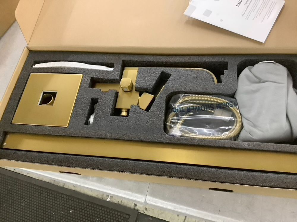 Solid Brass Floor Mount Standing Tub Filler Brushed Brass High Flow Rate Swivel Spout with Hand Shower