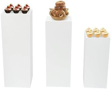 White Metal Square Pedestal Display Stands, 3 pc